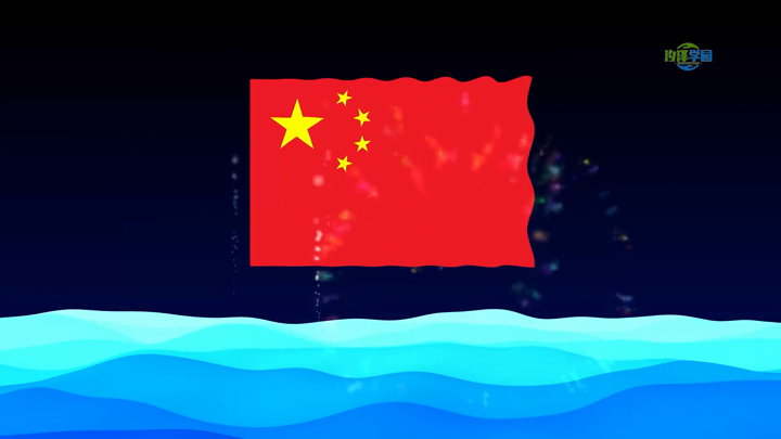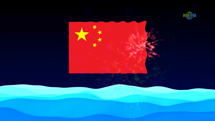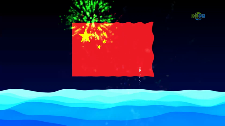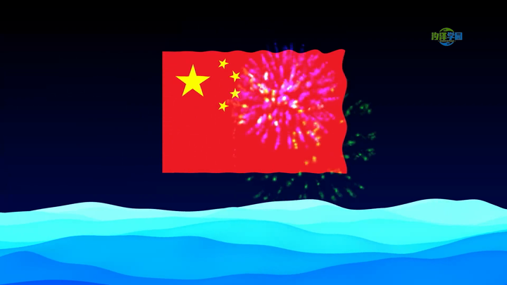 旗帜飘动烟花海浪